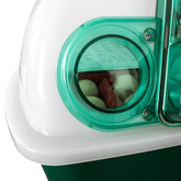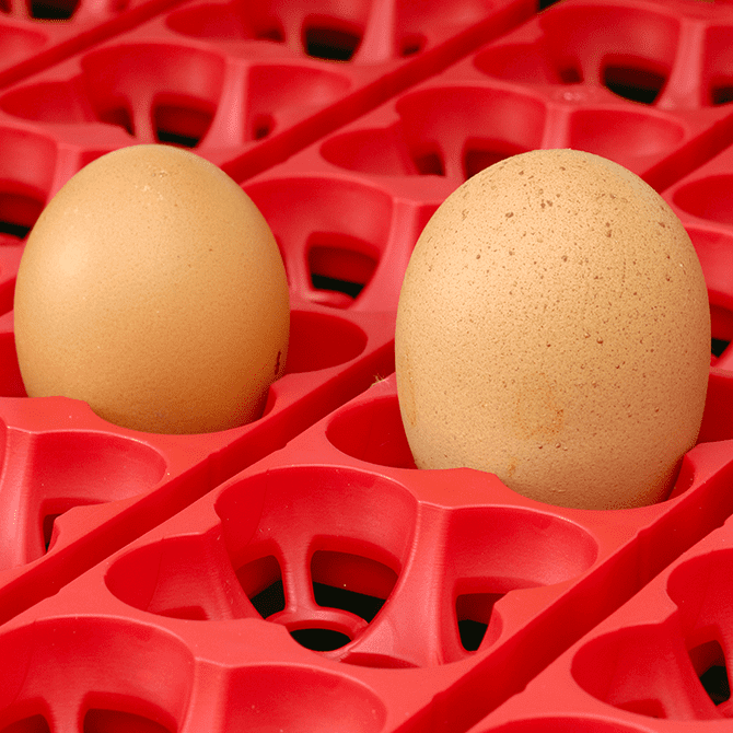 Locket har två inspektionsfönster som gör att du enkelt kan följa hela kläckningsförloppet utan att störa miljön inuti maskinen. Äggbrickans utformning gör att både små och stora ägg kan placeras stabilt under inkubationen.