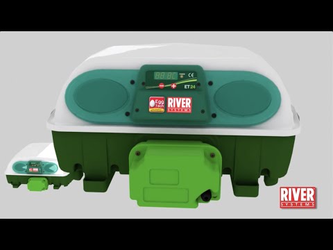 ET12 äggkläckningsmaskin har en kapacitet för 12 hönsägg eller 48 vaktelägg och är utrustad med ett digitalt display för enkel temperaturinställning mellan 25°C och 40°C i 0,1°C steg. Den automatiska äggvändaren, som kan styras både manuellt eller automatiskt, säkerställer en effektiv kläckning.