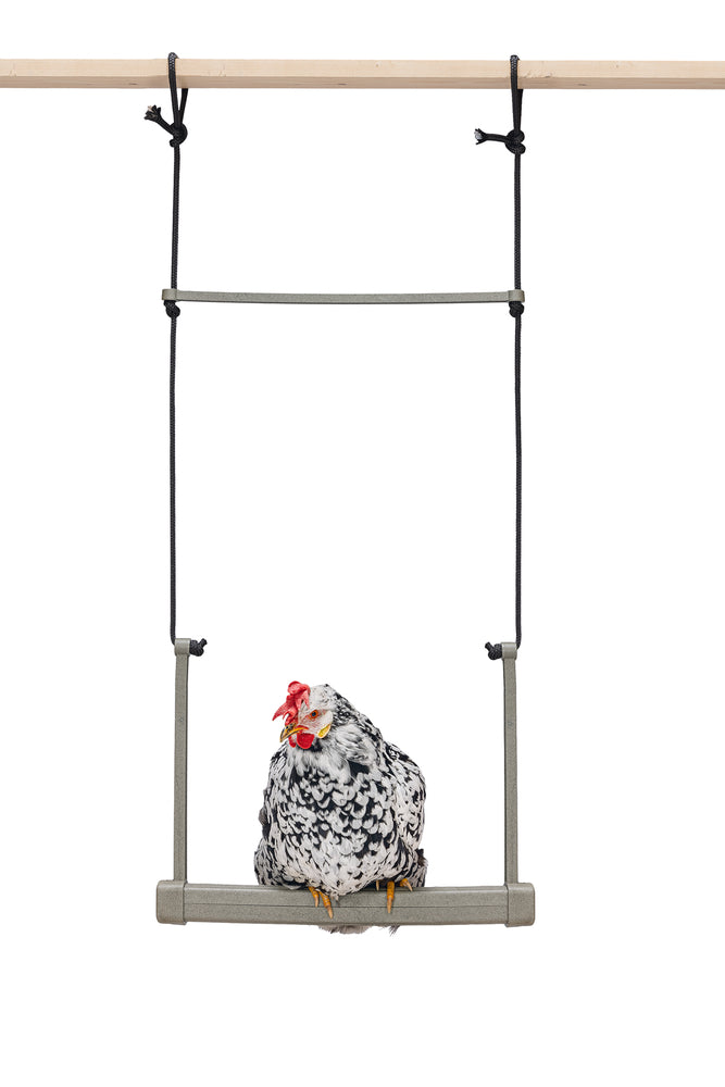 Ge dina höns en stimulerande och rolig miljö med denna slitstarka hönsgunga tillverkad av 100 % återvunnet material. Gungan är konstruerad för att uppmuntra naturligt beteende och öka aktiviteten i hönsgården, vilket bidrar till både välmående och minskad stress hos djuren.