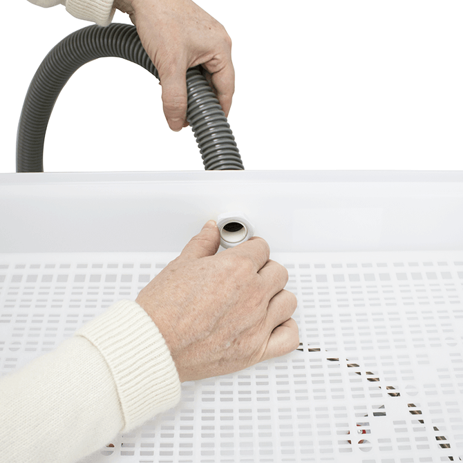 Befuktaren omvandlar vatten till mikroskopiska droppar med hjälp av ultraljudsteknik. Dessa leds in i kläckningsmaskinen via den medföljande slangen där de snabbt förångas och skapar en stabil och jämn fuktighetsnivå utan att påverka temperaturen negativt.